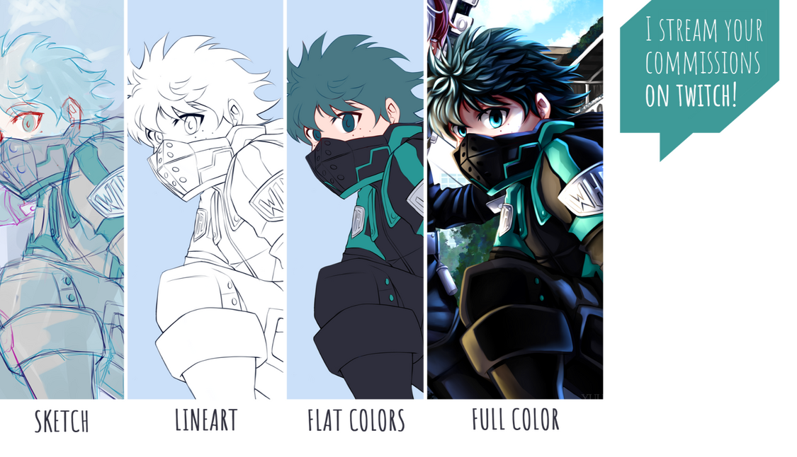 | Type | Sketch | Lineart | Flat colors | Full color |